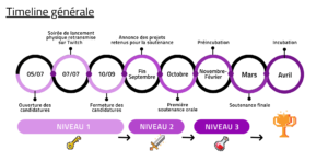 - Niveau 2 : Stand Up For your Project – Le niveau 2 débute en octobre 2021 dès lors qu’une présélection des dossiers est effectuée. Dans ce niveau, les 6 projets sélectionnés devront préparer leur première soutenance orale qui se déroulera mi-octobre. Les 3 projets les plus prometteurs seront sélectionnés pour le troisième et dernier niveau. Les projets non sélectionnés seront transmis à d’autres structures d’accompagnement partenaires.